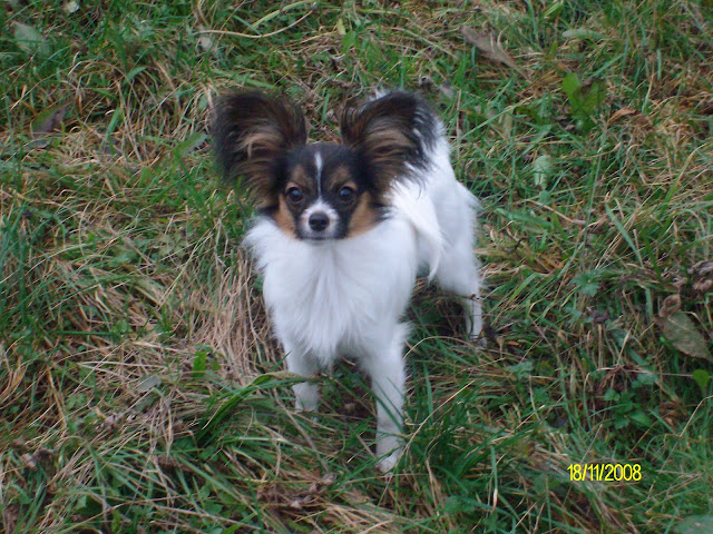 sicer pa barva itak ni tok pomembna... ja Ima par pikic pri gobčku, na vsaki strani eno malce bolj vidno in potem še spodaj po bradi par takih malo manj močnih. Sicer se pa z Lio ukvarjava trenutno s tem, da delat ponoči na mokri travi ni tok hudo - imamo šolo po tanovem ob 8h zvečer in je že kar tema, in je tamala čist nesigurna in jo stalno nekaj moti... :/