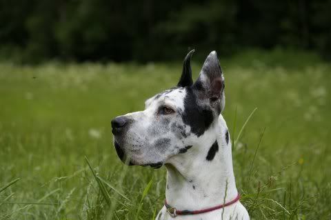 Dobro izgleda ta Candy za svoja leta.Kolikor mi je znano, so to že zrela leta za nemško dogo. Po slikah opažam, da je boljše imeti harlekina, kot pa črnega, ker črni na starost posivijo, harlekini pa ne ;D.