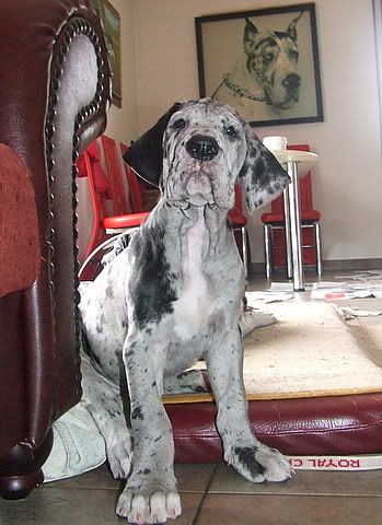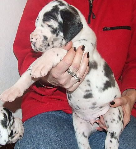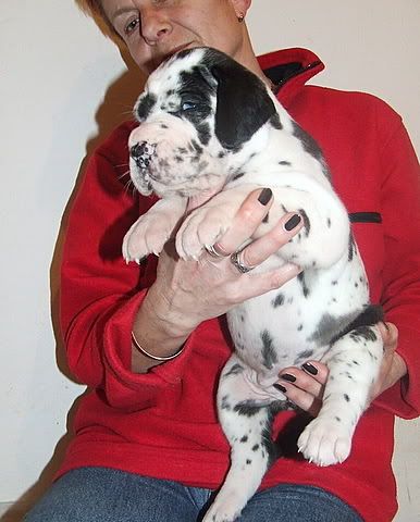 nas je pa danes v konjeniškem klubu obiskala ena ogromna harlekin nemška doga - samček. mater je bil lep, pa crkljiv kot muca