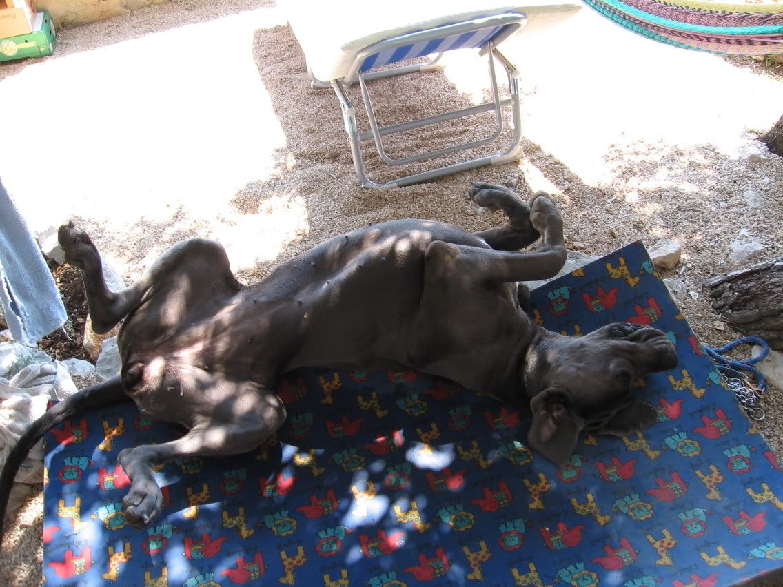 Troy, ja kaj naj rečem, sem prov vesela, da so tudi drugi psi tolk "veseli". Naš je zaenkrat šel ležat direkt v gredo od solate, pa mal je tud blitvo poležal (je blo zelo mehko, zdaj, ko je tolk zrasla), pa tud kanglico je "majčkeno" pogrizel, tako, da smo jo kar stran lahko vrgli....pa smo mislili, kaj je naredil... Vidim, da pasja domišljija nima meja....zdaj sem se ornk zamislila, kaj nas še čaka. Pa ravno sem imela idejo, da bi mu dala en kovter, da bi ležal gor...Mislim, da si bom premislila. Če bi jaz videla tvojega Troya takole v perju, pa še teraso in vrt, po mojem, da bi tud umrla od smeha. Vprašanje je pa, kaj bi naredili drugi, starejši člani družine....