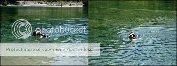 *star*, to Ai tudi dela, ko se potunkam hitro pride po mene, ampak jaz sem potem tepena v vodi, me kar napada v nos...heheh, je full dober plavalec in tudi, če ga primem za sprednje tačke, miga samo z zadnjimi in plava z mano ali pa me "rešuj" iz vode in me prime za roko in vleče na plitvino