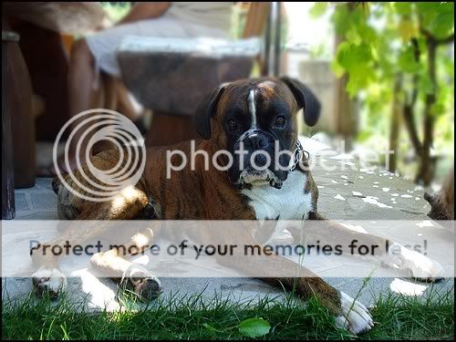 Zrastel je že v ogromnega psa, ima že nekje 18 kg in blazno je močan, lahko že konkurira škotu pri vlečenju vrvi, pa ima šele 5,5 mesecev....ne vem v kakšnega bika se misli razvit