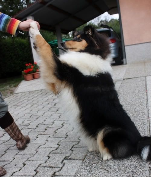 Urša in Sandra, upam da nista jezni če omenim Melly in Foxy. Foxy ima uhlje tipa 1, Melly pa tudi malo (en uheljček se občasno malo postavi pokonci) - Foksyjini geni za pokončne uhlje so močnejši od Mellyjinih. V primernih kombinacija bi imeli vsaj od Melly verjetno vsi mladiči prepognjene uhlje (po mamini strani imata vsaj nekaj "prepognjenih" genov - Donna in Glady imata obe naravno lepe uhlje), v neprimerni bi se pri obeh psičkah pojavili mladiči s pokončnimi uhlji. Pri kobinaciji Valjar&Luna (Valjar pokončni, Luna upognjeni) sicer ne vem kakšen je točen "rezultat". Zdaj poznam samo Ruby, ki ima prav lepo naravno prepognjena uhlja. In kolikor se spomnim mladičkov, je imel samo en malo bolj štrleča ušesa, ampak ne vem če so se mu dejansko postavila pokonci, ali ne. Katie pa vem da bo ravnala pametno in pri morebitni paritvi Ruby (ki ima med predniki pokončnouhe škote) in izbrala samca, ki ima naravno lepe uhlje in njegovo sorodstvo tudi. (Amdroma linija ima torej kar močne gene za naravno lepe uhlje