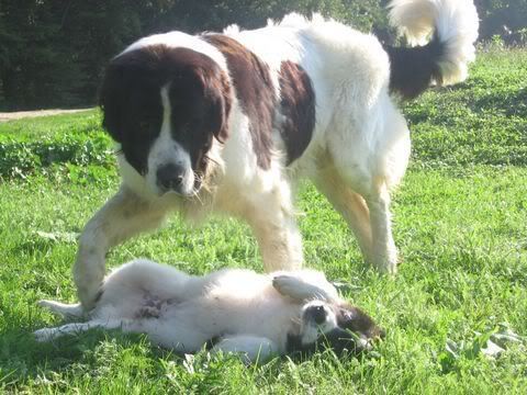 Kast, zdaj mi je pa prav žal, da sva Maxija gledali samo od daleč! Sem pa včeraj gledala ene slike doma v računalniku in ugotovila, da imam tudi jaz kakšno njegovo slikico! Bom prilepila naslednji teden - se mi zdi, da imam ene dve lepe od tega zelo zelo lepega psa, ki sem ga v Trbovljah zaradi njegove veličine res občudovala!!!