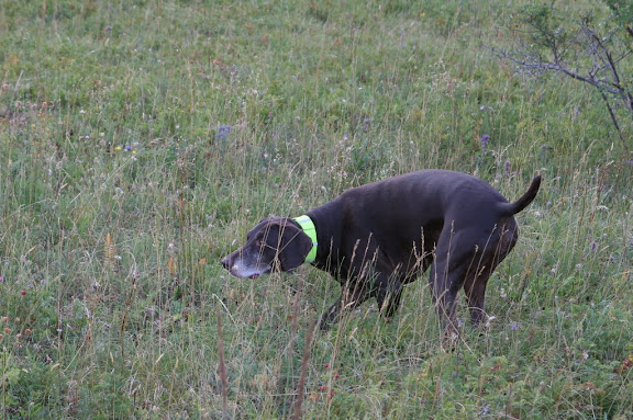 Tudi vse naslednje so bile vredu, tako da sedaj že ne grem več z njo do konca- naredim cca 20m od stotih, potem pa sama dokonča in neverjetno lepo prinese zajca
