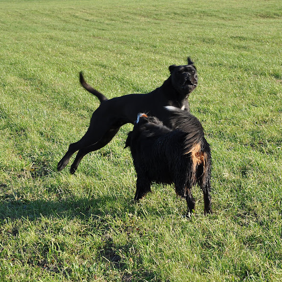 Naša Rozi je pa, kot jaz rečem, pes s posebnimi potrebami ;) Od kar sem sicer pogruntala, kako moram z njo, je sicer čisto drug kuža, taka zlata psička, da sploh ne moreš verjeti (tudi doma, ne samo izven doma, kot prej) in kar preveč navezana name (jaz se največ z njo ukvarjam in sedaj učim druge, kako morajo postopati z njo...). Ampak pred tem pa sem jaz sama sprovocirala kar nekaj težav pri njej, zaradi katerih ji še zdaj 100% ne zaupam... Ampak to moram v moji glavi razčistiti... Poleg tega tudi ona rabi čas, da pozabi na vse napake, ki smo jih prej nevede delali z njo... Je pa karaktrerno in fizično še veliko pod nivojem 6 mesecev, tako da verjamem, da bo nekaj od te njene situacijske nesamozavesti in nervoze, ki smo jo sami sprovocirali, tudi izginilo z odraščanjem...