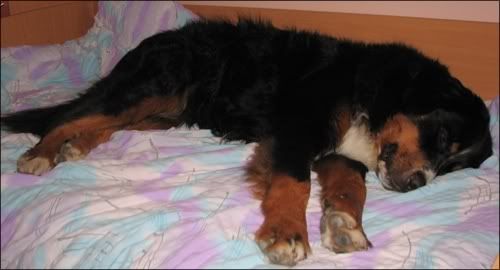 Rina je pa taprava uživačica :-* Me prav spominja na Bonie, samo da Bonie ne zasede (še) toliko pojstelje.... :D :D Tapru sta bla pa starša full proti, da je pes noter, zdej je pa lahk pr men na pojstli :D ;D :o