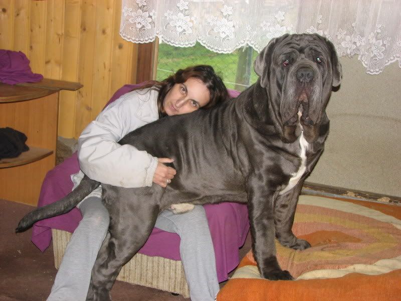 Mia je čisto taprava mastinka in če imajo tvoje 70 kg,potem so približno iste teže in verjetno velikosti-izgleda pa poleg Macka seveda zelo mala
