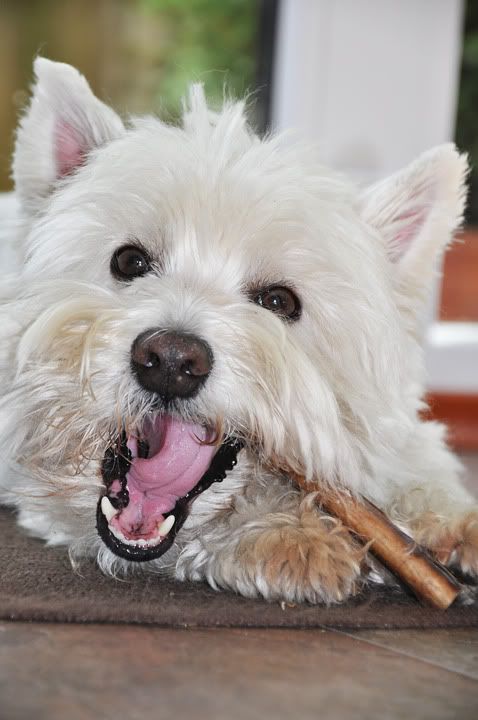 Ja, res je, je bila ena debata tudi o Cocotovih zobkih. Stanje se do sedaj ni nič izboljšalo, še vedno je spodnja čeljust izrazito manjša in "skrita" pod zgornjo. Zaenkrat kaninusa (ne vem, če sem prav napisala) še ne pritiskata v nebo, ampak tudi to mu bodo pogledali na kliniki in se bomo pogovorili, kako naprej (verjetno puljenje ali pa brusenje, če bi prišlo do tega). Bolj me skrbi to, da ima prva dva para spodnjih zobkov malo prekrita, ker pač ni dovolj prostora v gobčku. No, da je ves čas slinast, da ostaneje lužica, tam kjer spi in da je malo bolj počasen pri prijemanju stvari in hranjenju pa najbrž ni potrebno posebej razlagat.... Pa ko smo ravno pri tem, ima tudi nepravilno pigmentacijo po gobčku, ustnicah in tačkah. Ja, tak je naš mali mulc, ampak saj me razumete, da je najlepši, kajne?