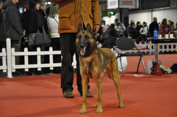Pri malinoisih se zelo pogosto dogaja, da se psi - delavnih linij bolj oddaljujejo od standarda (po izgledu). Samec na sliki je zelo lep primer malinoisa kakršen je po standardu (kratkodlaka različica ostalih) in je v razredu delavnih:), za potrebe obrambe so kot taki (po standardu) preveč drobni (gracilni). Samec v živo po moji oceni ni tehtal več kot 25 kg, marsikateri delavni malinois ima pa preko 35 (in več kg) kar seveda spremeni konstitucijo. Glave pa tudi postajajo masivnejše in širše zaradi boljšega/močnejšega ugriza.