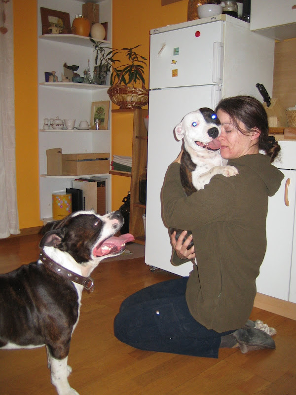 Njegova lastnica Tanja – naj vas videz ne prevara, ni tako prijazna! Jaz menim, da je kar NEVARNA! Mojega prijatelja stalno nekaj maltretira, hodi z njim v šolo, trenira pasje športe, vozi na razstave,… in trdi, da to počne v dobro prepoznavnosti pasme. Pihh, le kdo bi ji verjel!