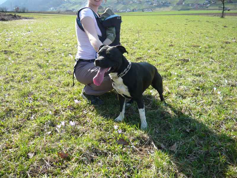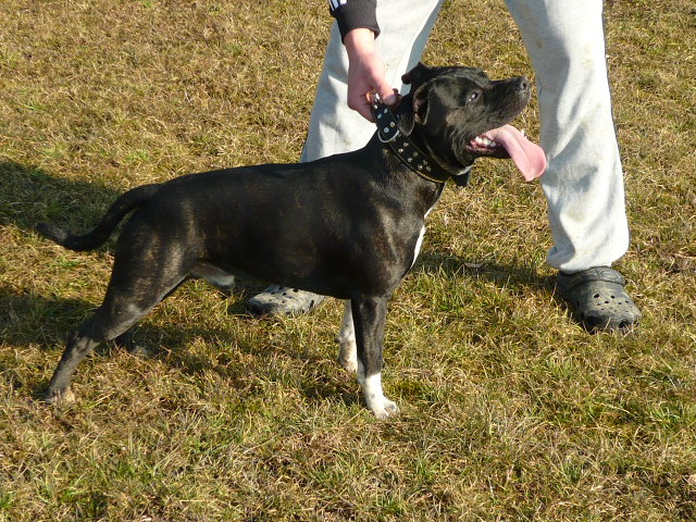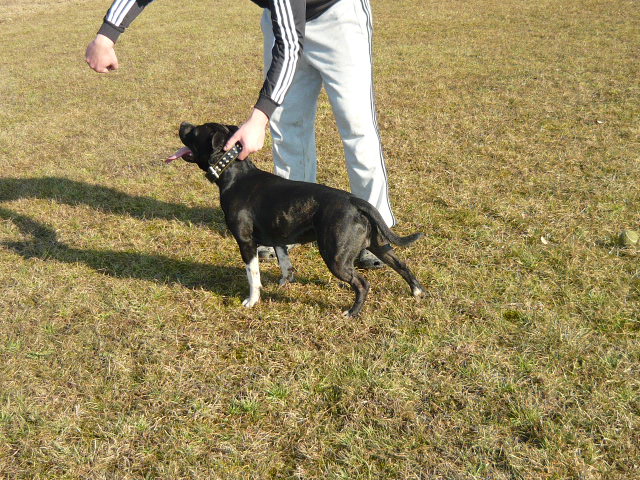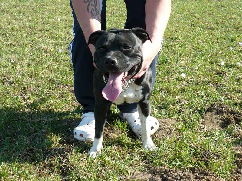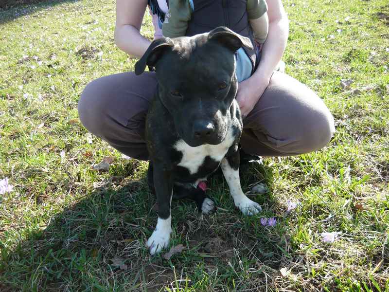 Pozdravljeni, jaz imam SBT-ja, star je dve leti in pol. Izredno ubogljiv in učljiv. Povodca praktično ne pozna, tudi pred trgovino počaka sam. Že od majhnega me je spremljal na mojem delu, sem namreč radijska in televizijska voditeljica, tako večkrat tudi sodeluje v kakšnih oddajah.
