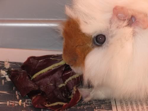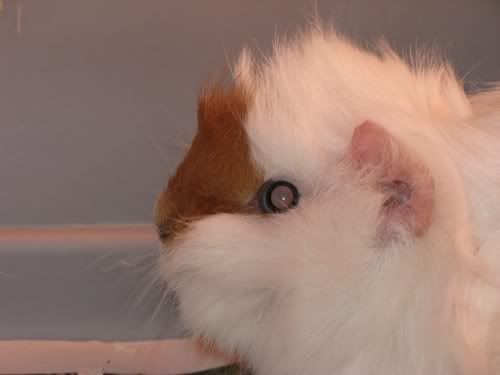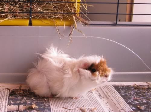 Maja - je tole notranjost njegove kletke? Ce je, ne bo ok ... Namrec, so precej obcutljivi na pretrdo podlago, ki lahko povzroci nastanek zuljev (ki pa niso "le zulji", ampak navadno hudo zoprna zadeva za zdravit). Dno kletke mora biti mehko - najbolje se obnese, ce das na pod kletke casopisni papir ali plenicno podlogo (tako cisto tanko), cez to vsaj 2 prsta debelo plast zaganja in cez to priblizno enako debelo plast sena. (isto velja za kletke kuncic) Pa precej fino je, ce ima nekje v kletki hisico,, da se lahko vanjo skrije, ce se hoce.