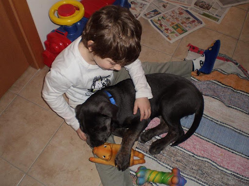 Še dobro da je zdaj vse vredu. Je pa problem z tem ja.. Naš tudi ima vedno nos na tleh in karnaprej nekaj žveči. Od kamenja, papirnate in osvežilne robčke, spužve, vse in to res vse kar najde. Je problem ko naš tamali sin vsepovsod vlači in pušča igrače, in Maddox je zelo vesel ko kaj najde. Spravlja se na zid, praska in je siporeks, imamo kamin zidan iz stare rdeče opeke in tudi gloda ::)